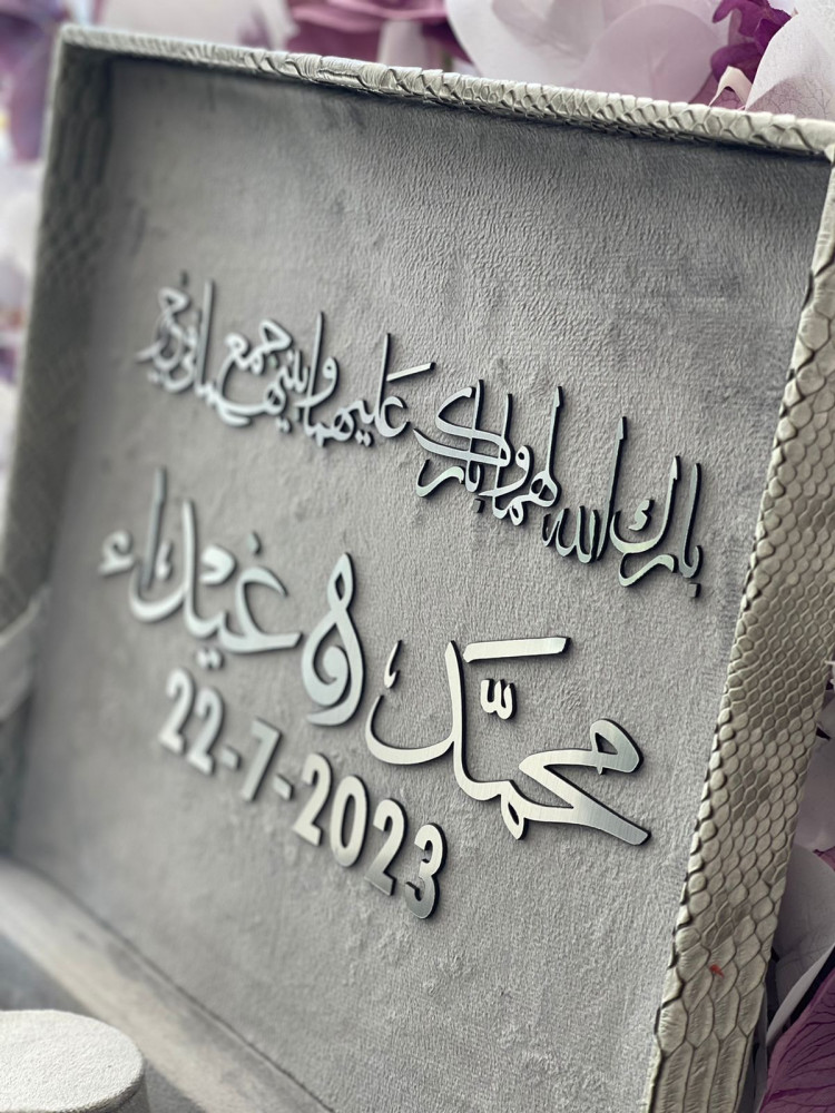 بإمكانك اختيار لون الكتابه بالذهبي او الفضي اوالابيض و الاسود